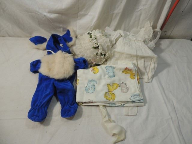 DOLL ACCESSORIES, NICE DRESS, BLANKET AS SHOWN ALL FOR ONE MONEY.