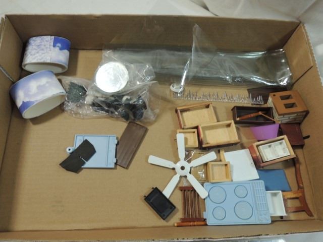 HUGE LOT OF VARIOUS TYPES AND STYLES OF DOLL HOUSE MINIATURES, AS SHOWN IN THE PICTURES.