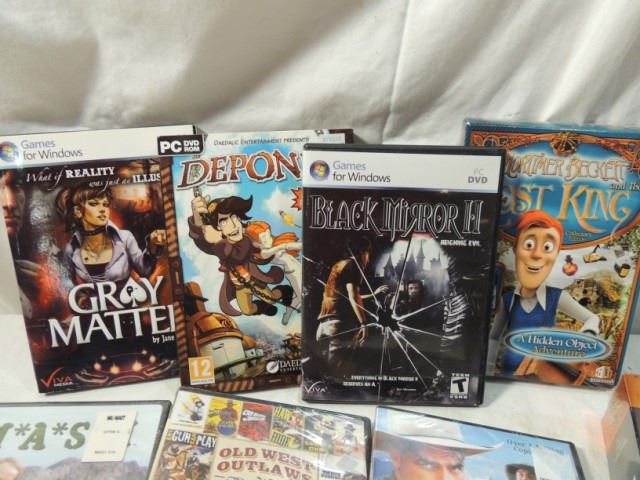 BOX LOT PC GAMES, DVD MOVIES, VHS MOVIES, ETC. AS SHOWN. MASH SEASON TEN COLLECTORS EDITION. OLD WEST OUTLAWS, DOCTOR ZHIVAGO UNOPENED SET. ETC. AS SHOWN. LOOK THEM OVER!!