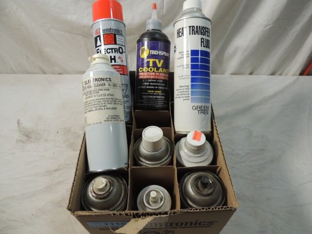 ALCOHOL CLEANER, ELECTRONICS SPRAY CLEANER, PLASTIC CLEANER, FLUX REMOVER, AND MORE, AS SHOWN.