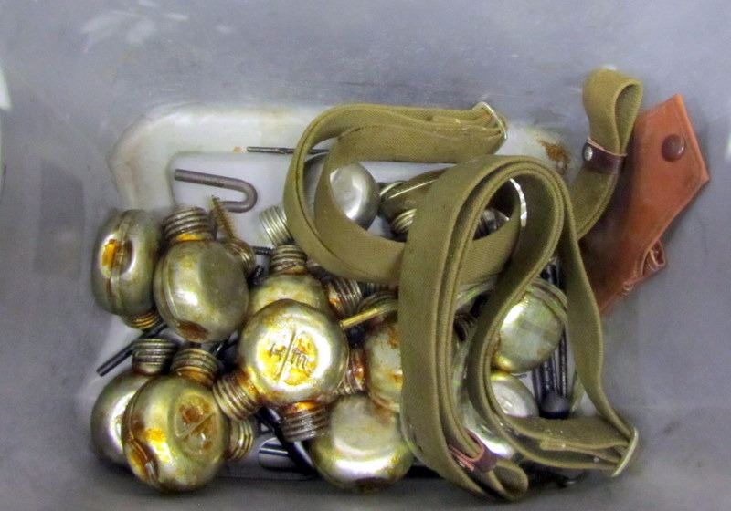 LARGE LOT ASSORTED ACCESSORIES. BOB ALLEN BOW CASE. TWO PARTIAL BOXES .308 BULLETS. NEW IN BOX CROSSBOW ACCESSORIES. LEVYS LEATHER SLING. LARGE QUANTITY OF SKS AND MOSIN NAGANT CLEANING KITS AND SLINGS. OTIS 30 CALIBER CLEANING BRUSH.