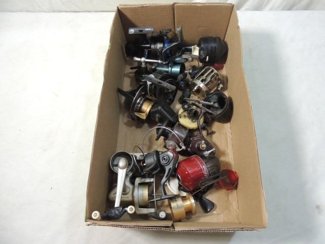 ALL SORTS OF REELS, PARTS, PIECES, ETC. AS SHOWN. GREAT FOR REPAIR, OR PROJECTS, ETC. AS SHOWN.