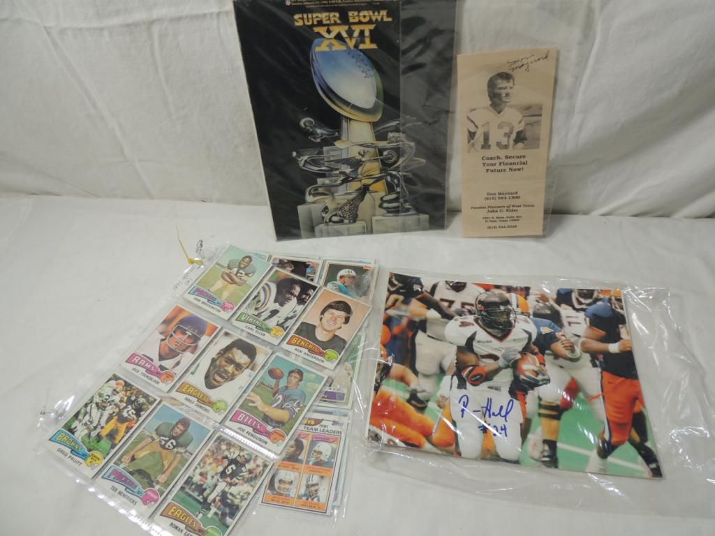 BROCHURE AUTOGRAPHED FOOTBALL PLAYER DON MAYNARD. NO COA, COLLEGIATE PHOTOS AUTOGRAPHED PENN ST #39 & CINCINNATI #24, 36 1975 (18) & 1983 (18) FOOTBALL PLAYER CARDS.AS SHOWN SEE PHOTO FOR MORE DETAILS.