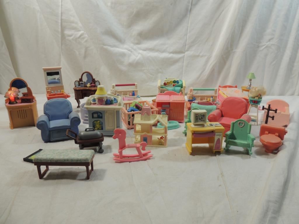 VINTAGE PLASTIC DOLLHOUSE FURNITURE, DOLL HOUSE ACCESSORIES, DOLL HOUSE COLLECTIBLES, MINATURE FUNITURE, REPLICAS, DOLL HOUSE DETAILED AS SHOWN SEE PHOTO FOR MORE DETAILS.