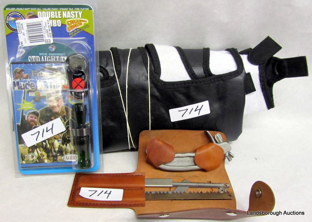 THREE OUTDOOR SEATS, CALLING COACH FOR DUCKS - NEW IN PACKAGE, WYOMING SAW, BRA FOR CHEVY SILVERADO FULL SIZE.