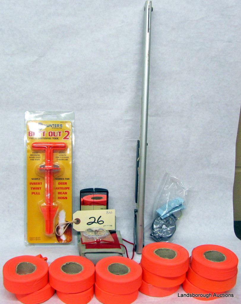 BUTT OUT 2, WHAT A SAW HAND SAW, SILVA COMPASS, ENGINEER COMPASS, FOX WHISTLE, ORANGE BLAZE TAPE.