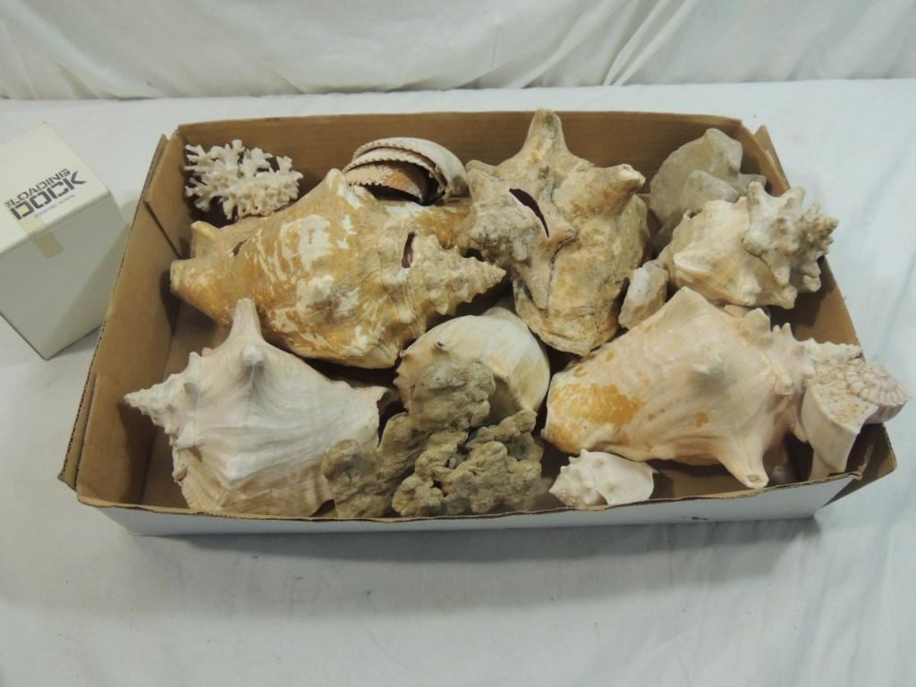 SEA SHELLS, ASSORTED SEA SHELLS, DECORATIVE, LARGE SHELLS, COLLECTORS SHELLS, AS SHOWN SEE PHOTO FOR MORE DETAILS.