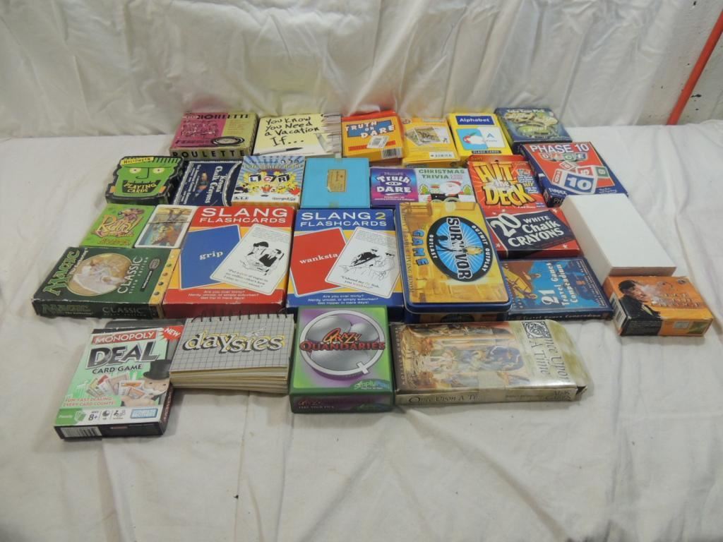 FLASH CARDS, KNOCK KNOCK JOKES, CARD GAMES, FLASH CARD CAMES, SURVIOR GAME, MONOPLY DEAL, QUESTION GAMES AS SHOWN SEE PHOTO FOR MORE DETAILS.