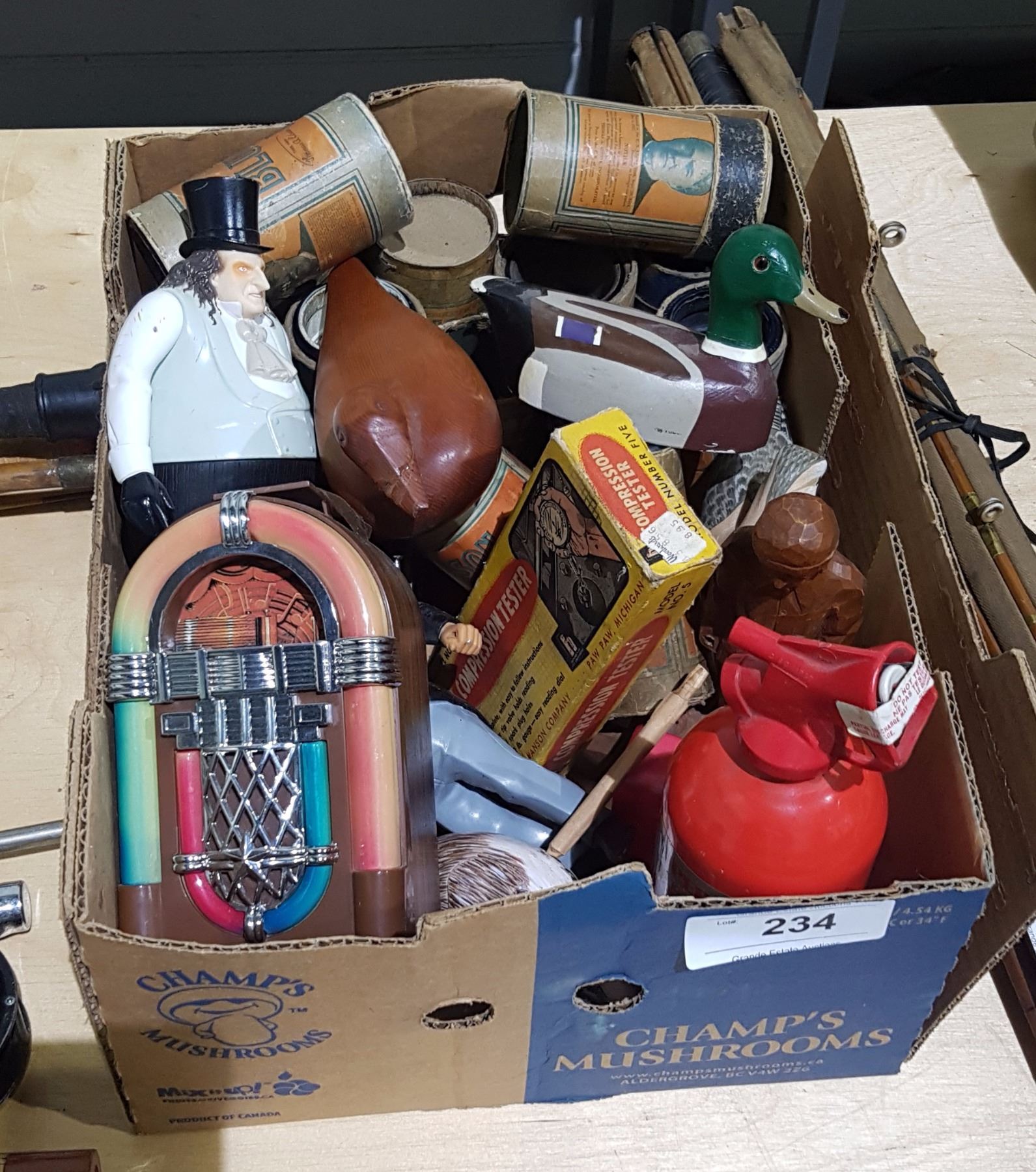 INC PHONOGRAPH CYLINDERS, JUKE BOX RADIO, MINIATURE WOOD DECOYS, ETC