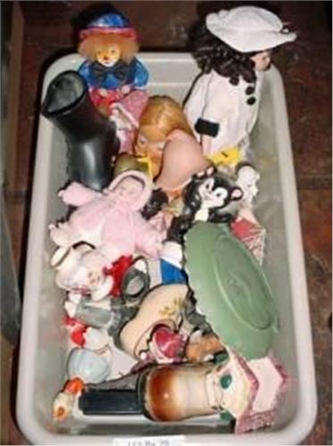 BOX LOT OF ASSORTED ITEMS INCLUDING VARIOUS ASSORTMENTS THAT COULD INCLUDE DOLLS, VINTAGE AND ANTIQU
