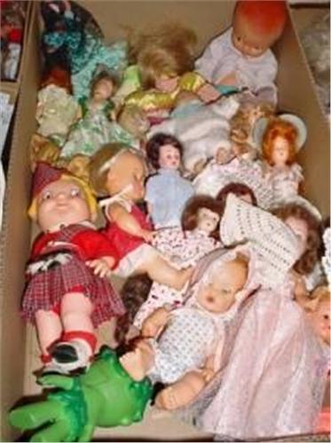 BOX LOT OF ASSORTED ITEMS INCLUDING VARIOUS ASSORTMENTS THAT COULD INCLUDE DOLLS, VINTAGE AND ANTIQU