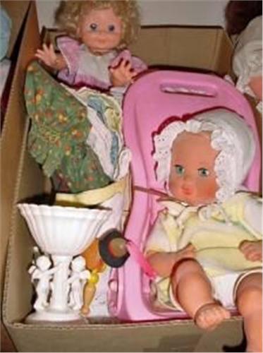 BOX LOT OF ASSORTED ITEMS INCLUDING VARIOUS ASSORTMENTS THAT COULD INCLUDE DOLLS, VINTAGE AND ANTIQU