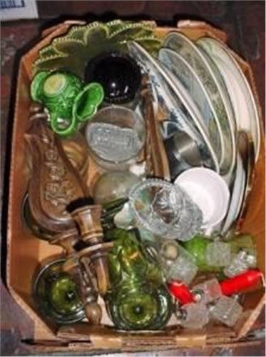 BOX LOT OF ASSORTED ITEMS INCLUDING VARIOUS ASSORTMENTS THAT COULD INCLUDE DOLLS, VINTAGE AND ANTIQUE ITEMS, COLLECTIBLES, AND MORE.