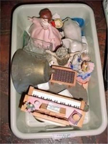 BOX LOT OF ASSORTED ITEMS INCLUDING VARIOUS ASSORTMENTS THAT COULD INCLUDE DOLLS, VINTAGE AND ANTIQUE ITEMS, COLLECTIBLES, AND MORE.