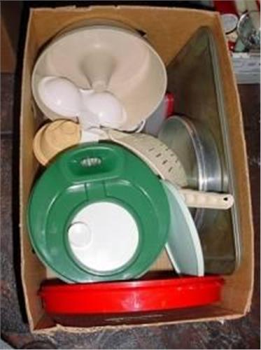 BOX LOT OF ASSORTED ITEMS INCLUDING VARIOUS ASSORTMENTS THAT COULD INCLUDE DOLLS, VINTAGE AND ANTIQUE ITEMS, COLLECTIBLES, AND MORE.