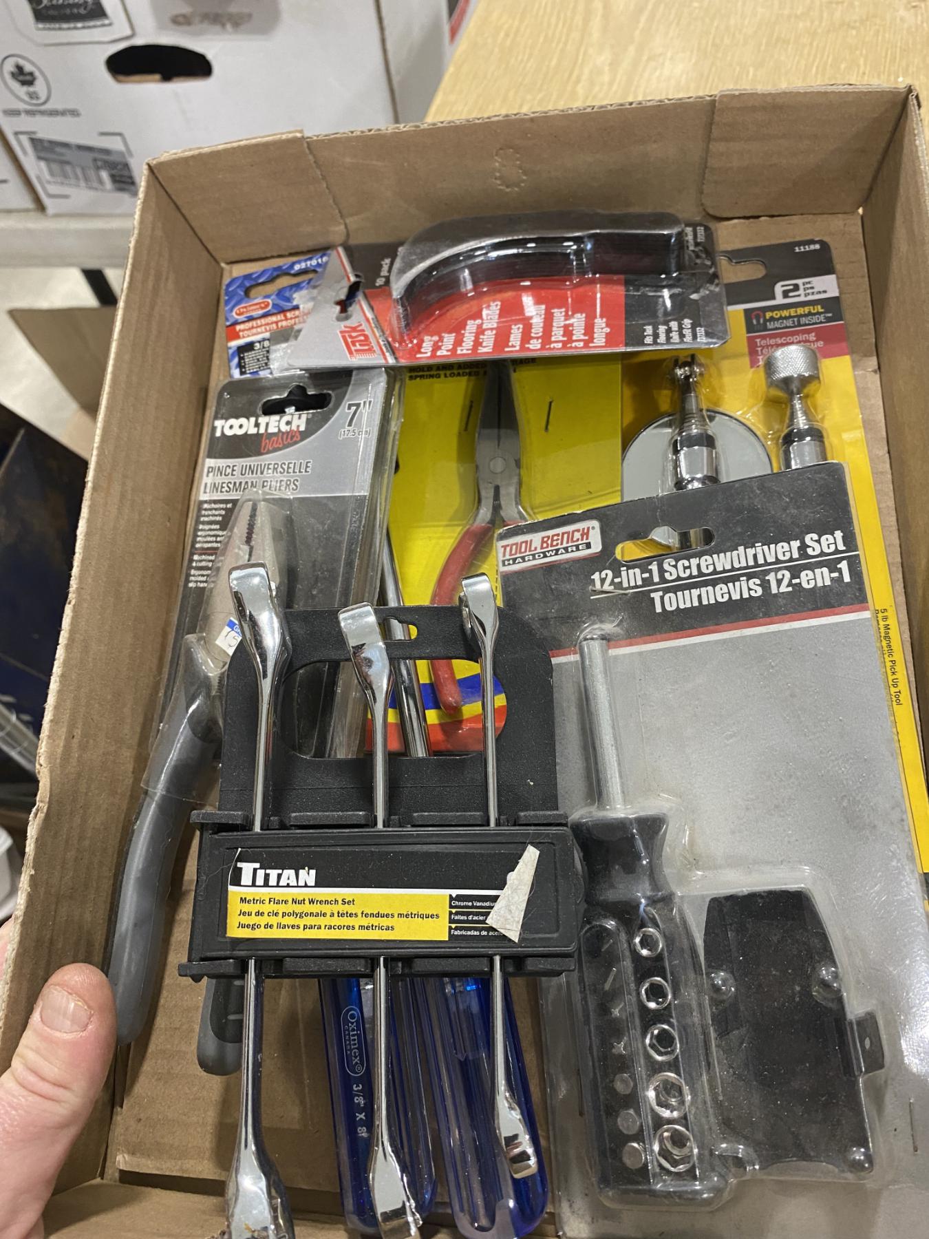 BOX LOT OF ASSORTED TOOLS