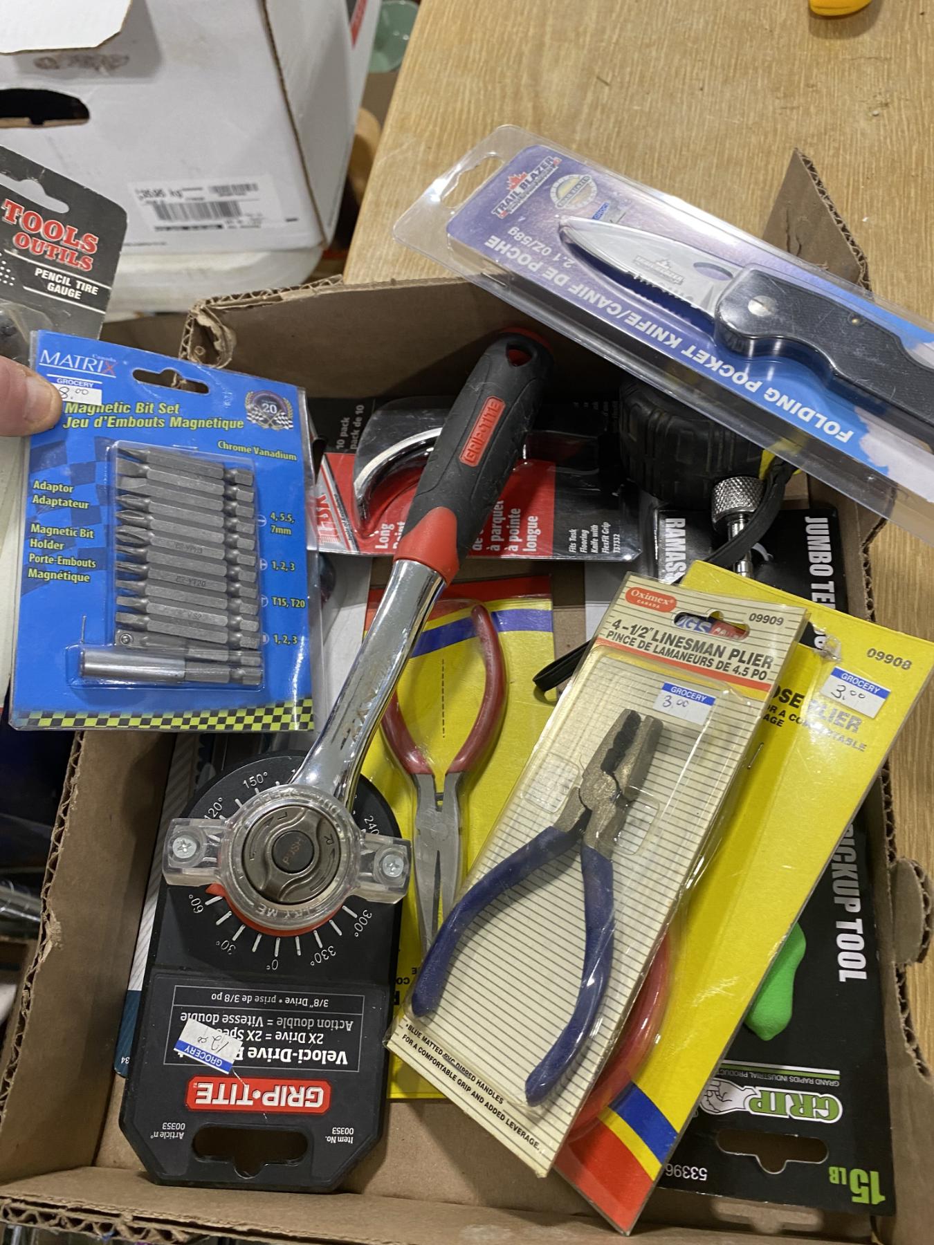BOX LOT OF ASSORTED TOOLS