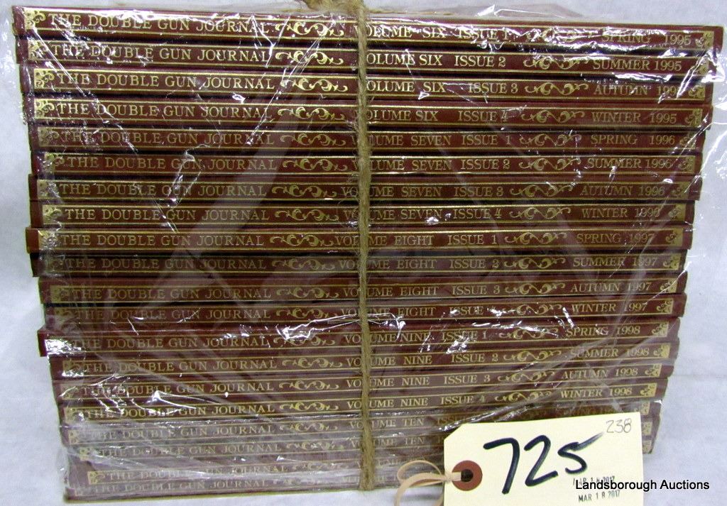 20 ISSUES OF THE DOUBLE GUN JOURNAL. COMPLETE SET OF 4 ISSUES OF: VOLUME SIX, VOLUME SEVEN, VOLUME EIGHT, VOLUME NINE AND VOLUME TEN. DATED SPRING 1995-WINTER 1999. WILL BE COSTLY TO SHIP DUE TO WEIGHT