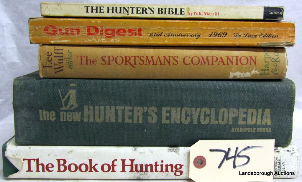 THE SPORTSMAN'S COMPANION BY T JANES, H LYMAN, C ORMOND, AND F WOOLNER, THE NEW HUNTERS ENCYCLOPEDIA BY STACKPOLE BOOKS, THE 23RD ANNIVERSARY 1969 DELUXE EDITION GUN DIGEST, THE HUNTERS BIBLE BY W K MERRILL, AND THE BOOK OF HUNTING BY PADDINGTON PRESS LTD