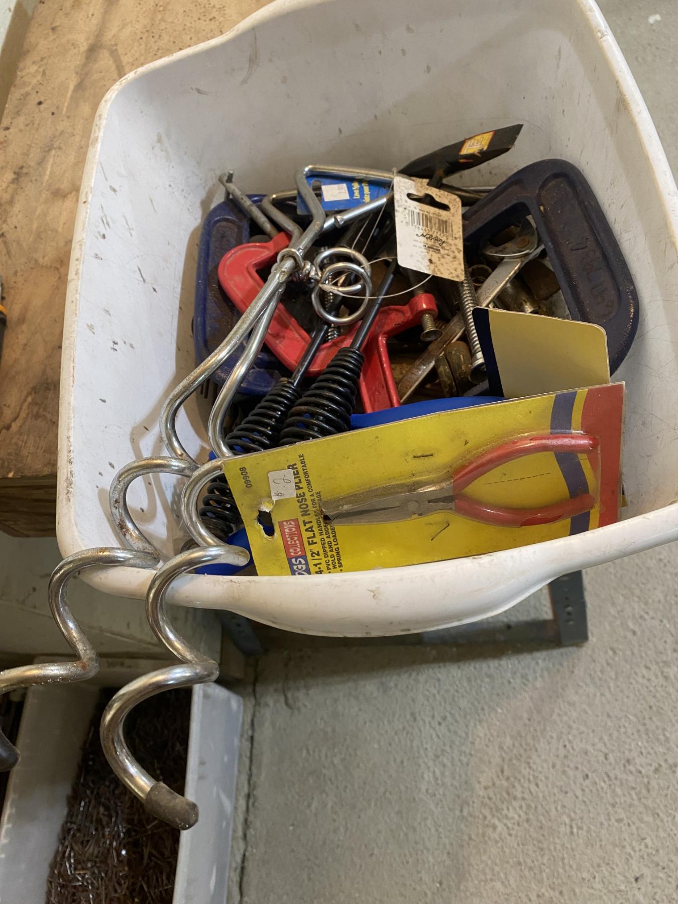 BOX LOT OF CLAMPS, SOCKETS, ETC.