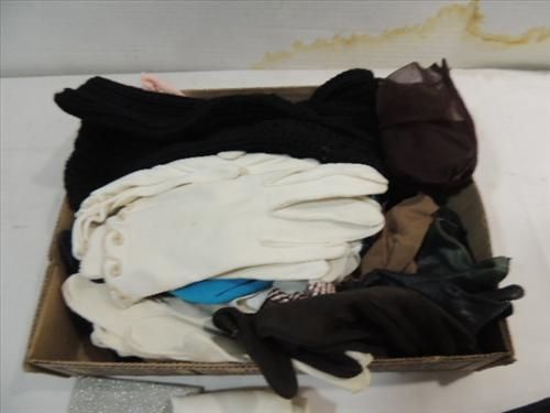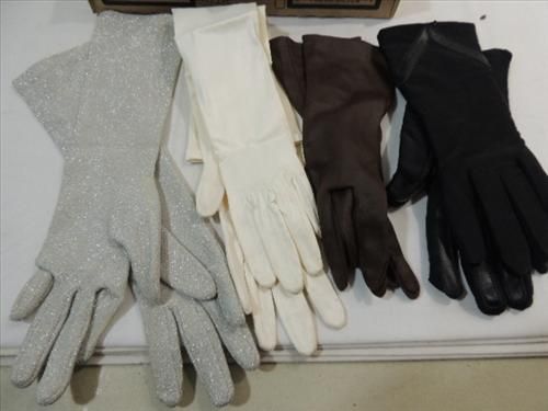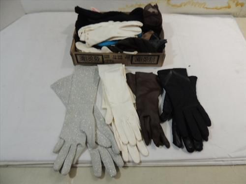 BOX LOT OF LADYS FORMAL & CASUAL GLOVES. AS SHOWN. VIEW PICTURE FOR DETAIL.