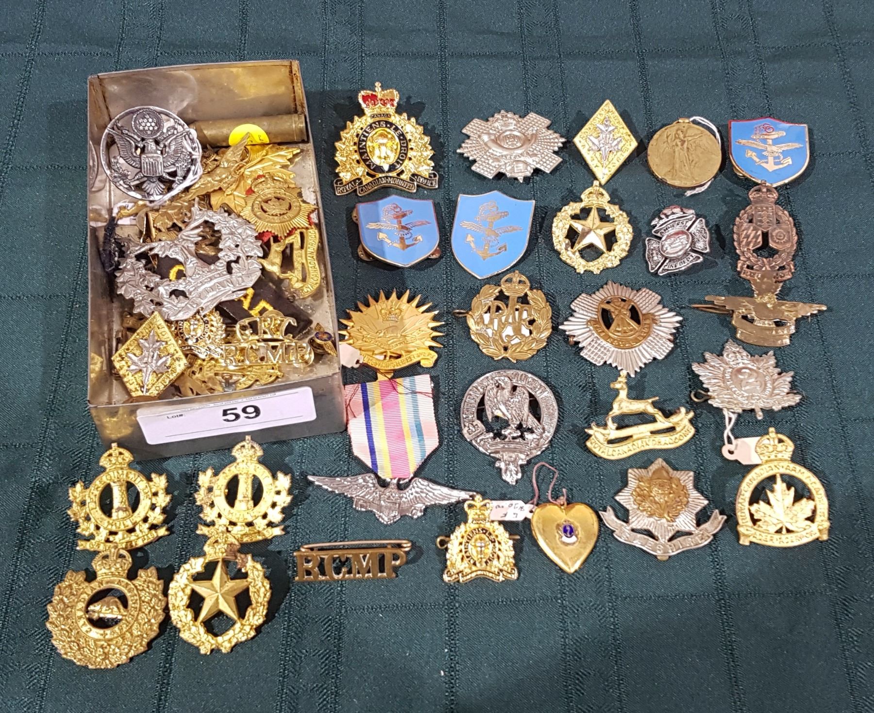 BOX LOT OF MISC MEDALS, BADGES, ETC