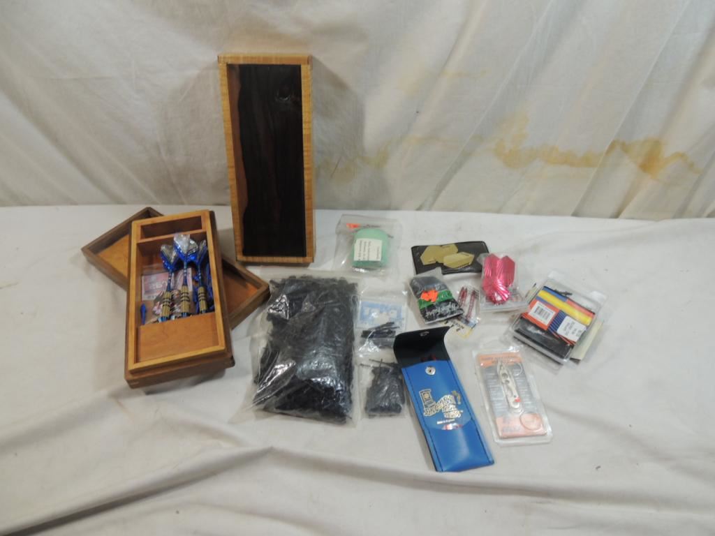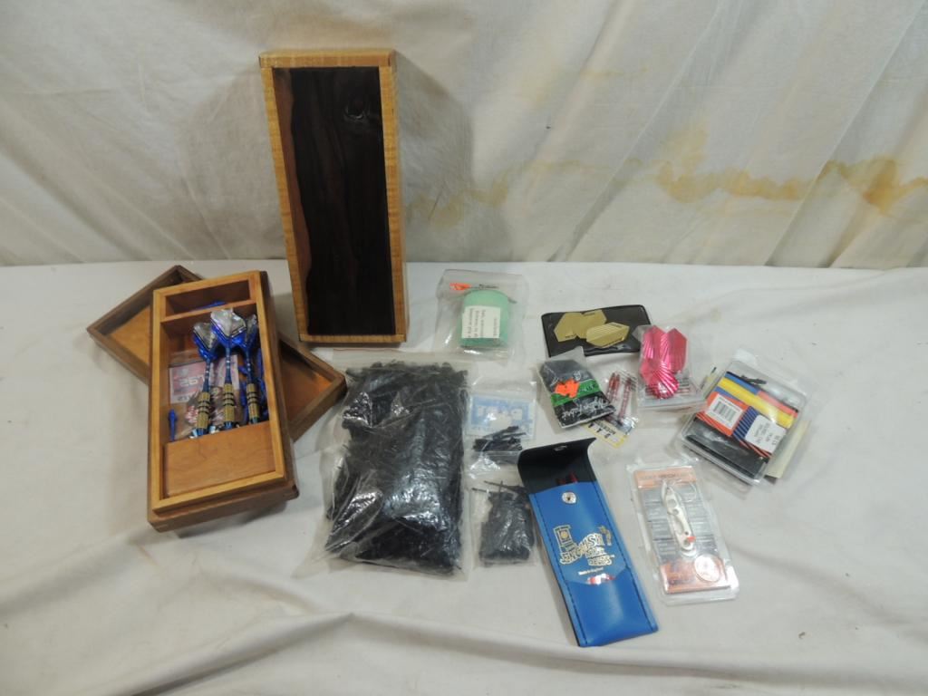 PROFESSIONAL DARTS, DART SETS, DART PARTS, ASSORTED PARTS, BAR GAMES, AS SHOWN SEE PHOTO FOR MORE DETAILS.