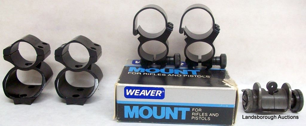BUSHNELL BANNER 3-9 X 50 WITH RINGS, BUSHNELL SPORTVIEW 3-7 X 20 WITH RINGS, KWIK SITE SEE THROUGH RINGS, WEAVER 1" TIP OFF SEE THROUGH RINGS, M1 GARAND PEEP SIGHT.
