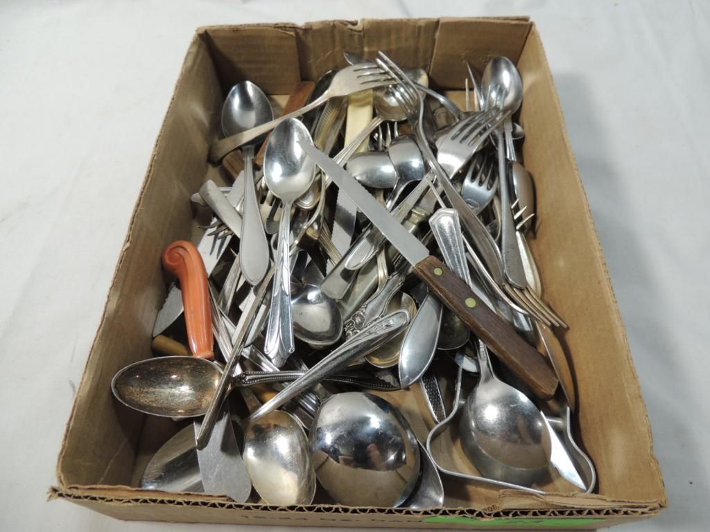 SILVER PLATED AND STAINLESS STEEL ASSORTED SILVERWARE. AS SHOWN. SEE PHOTO FOR MORE DETALS