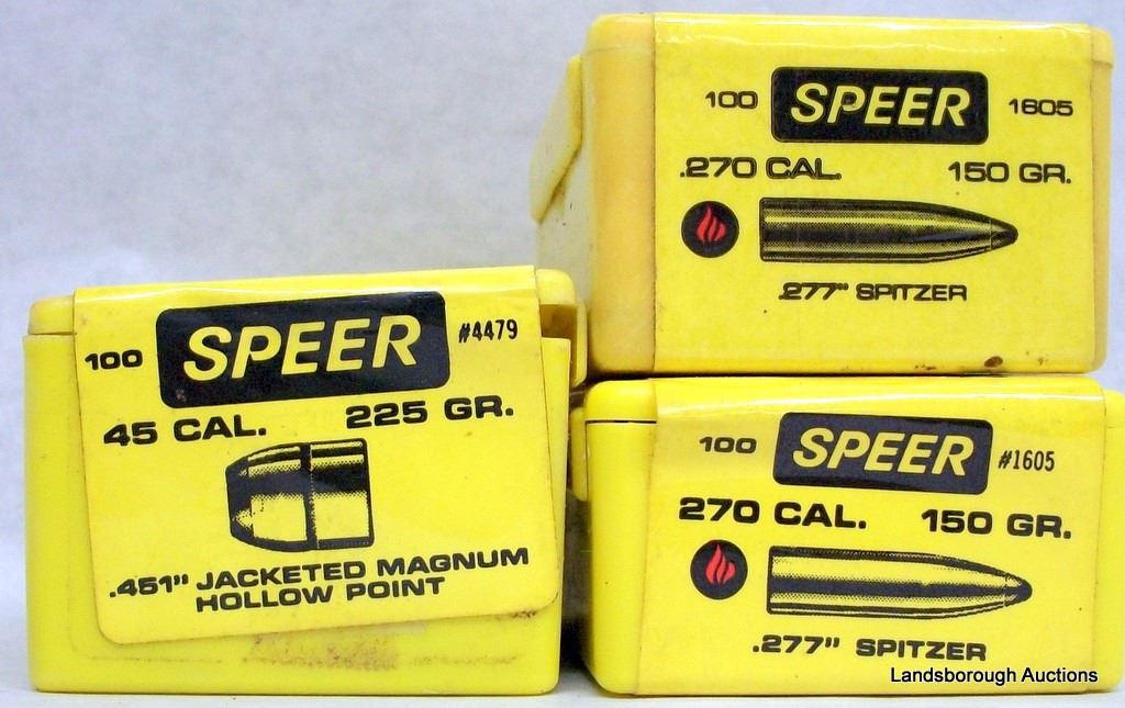TWO BOXES 270 CAL 150 GRN SPITZER, ONE BOX 45 CAL 225 GRN JACKETED MAGNUM HOLLOW POINT.