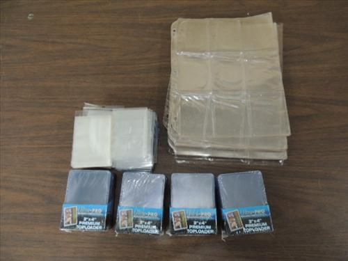 BOX LOT SPORTS CARD COLLECTING SUPPLIES: 3X4 CARD HOLDERS, 9 CARD HOLDER SHEETS. AS SHOWN. VIEW PICTURE FOR DETAIL.