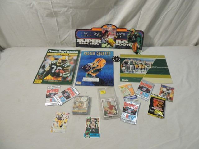 SCORE 1989 ROOKIE AND TRADING SET, PROSET, DAUNTE CULPEPPER, DOMINOS PIZZA NFL BOX TOPPER, PACKERS YEARBOOKS, AS SHOWN SEE PHOTO FOR MORE DETAILS.