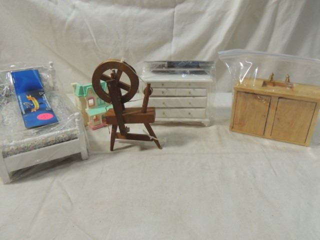 DOLL HOUSE FURNITURE BOX LOT AS SHOWN.