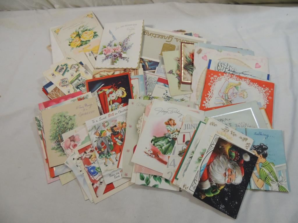 GREETING CARDS BIRTHDAY, VALENTINES, CHRISTMAS, HOLIDAY, MOTHERS DAY, DECORATIVE, COLLECTIBLE, EPHEMERA, AS SHOWN SEE PHOTO FOR MORE DETAILS