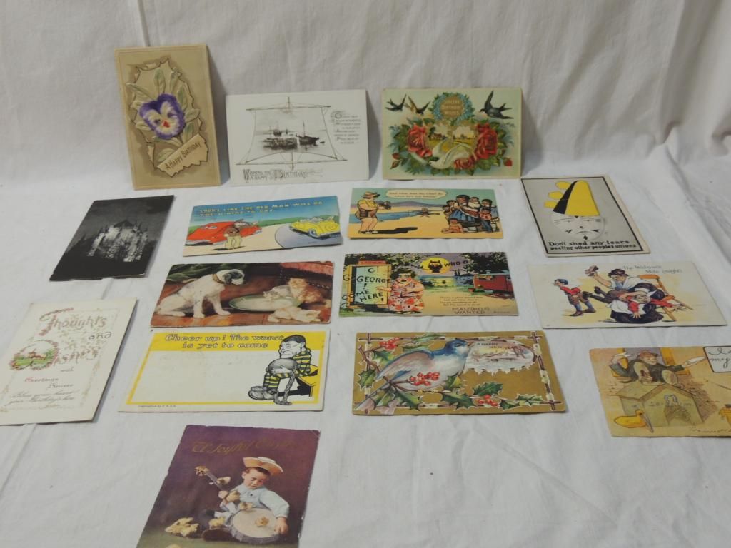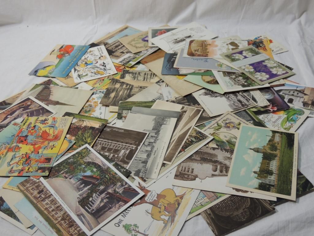 BOX LOT VINTAGE POSTCARDS. POST CARDS. HUMOR. HAND WRITTEN. COLOR, BLACK AND WHITE. EMBOSSED. HOLIDAY. HAPPY BIRTHDAY. SOME WITH STAMPS, SIMPATHY. PAPER EPHEMERA. AS SHOWN. SEE PHOTO FOR MORE DETAILS.