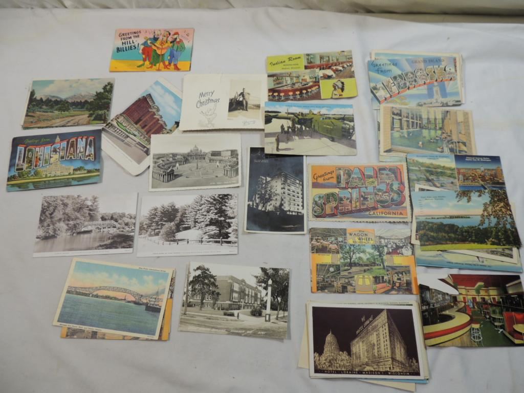 VINTAGE POSTCARDS, VATICANE STAMPS, BLACK & WHITE PHOTO CARDS, TRAVEL CARDS, BIG LETTER CARDS, HUMOR CARDS, AS SHOWN SEE PHOTO FOR MORE DETAILS.