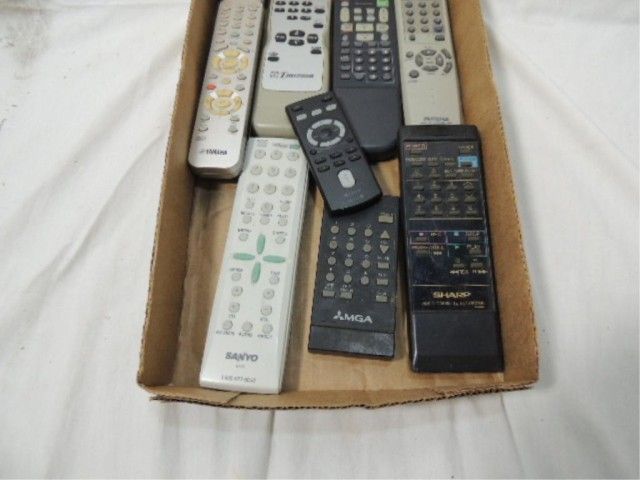 LOT OF 8 REMOTE CONTROLS FOR TELEVISIONS, STEREOS, DVD PLAYERS, AND MORE. VARIOUS BRANDS. AS SHOWN. SEE PICTURES FOR DETAILS.