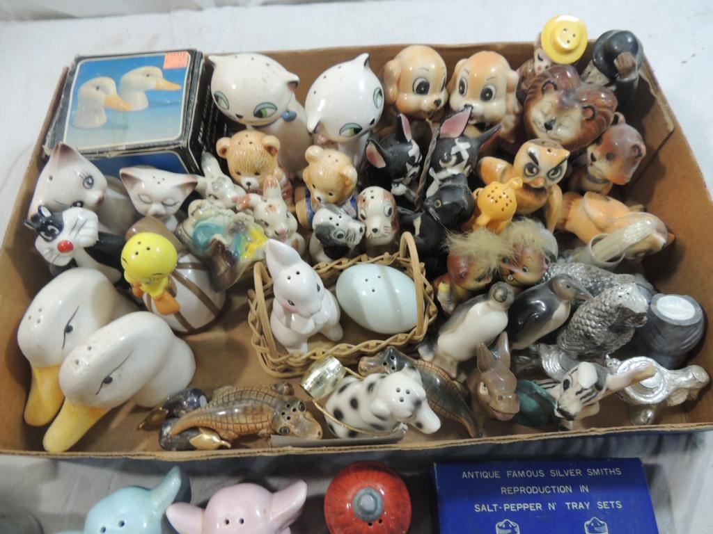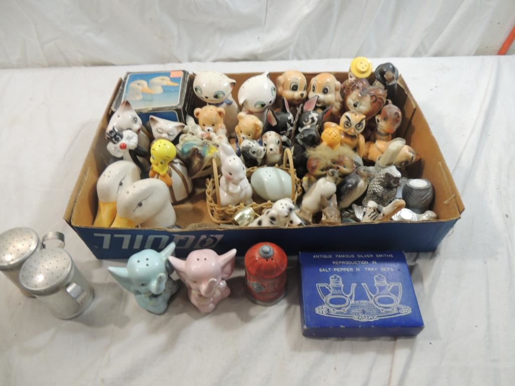 COLLECTIBLE SALT & PEPPER SHAKERS, VINTAGE SALT & PEPPER SHAKERS, ANIMAL, NOVELITY, HUMOR, VINTAGE, CERAMIC, METAL, GLASS, DECORATIVE AS SHOWN SEE PHOTO FOR MORE DETAILS.