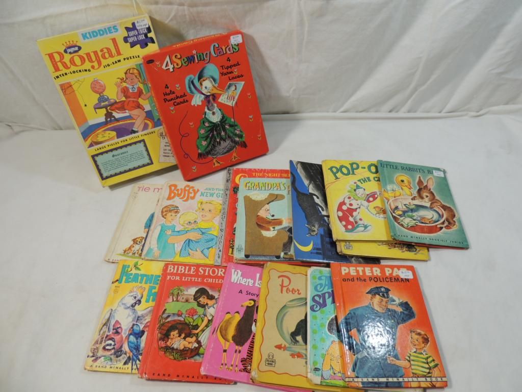 BOX LOT VINTAGE SEWING CARS, BOOKS & PUZZLES
