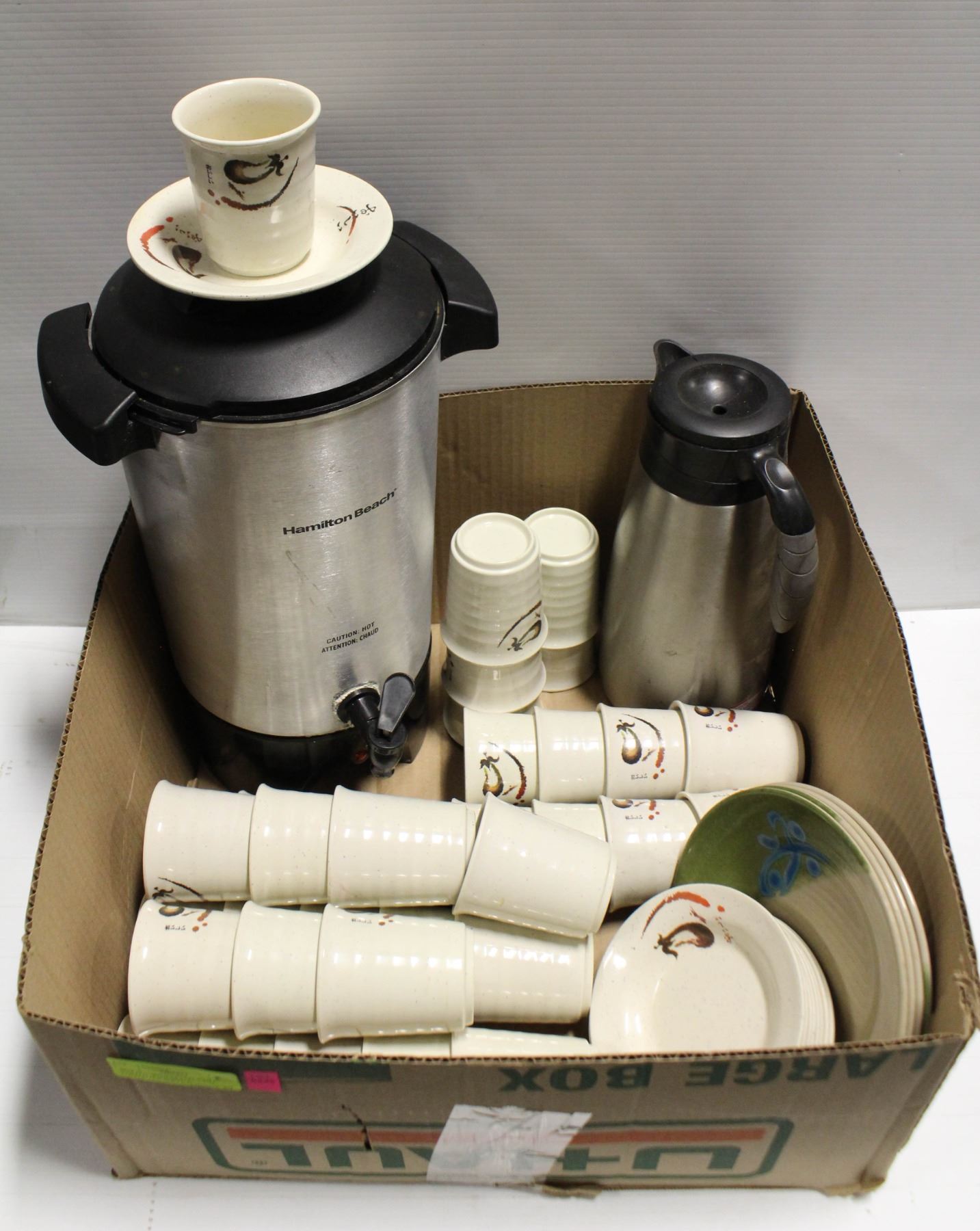INCLUDING 35 MELAMINE CUPS WITH DESIGN, 10 SAUCERS, 4 SANDWICH PLATES, S.S. CARAFE, LARGE CAPACITY COFFEE MAKER **ALL ITEMS MUST BE REMOVED BY 5PM MONDAY, DECEMBER 12TH, 2022. ALL REMAINING ITEMS WILL BE SUBJECT TO A $6.00 PER DAY STORAGE CHARGE. ANY ITEMS REMAINING AFTER MONDAY, DECEMBER 26TH, 2022 WILL BE CONSIDERED FORFEITED. NO REFUNDS WILL BE ISSUED FOR FORFEITED ITEMS. TO SCHEDULE A PICK UP APPOINTMENT CLICK HERE