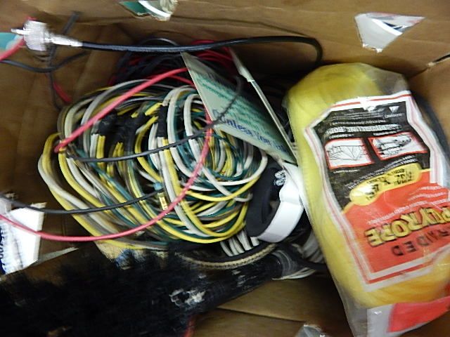 BOX NEW ROPE, ASSORTED CABLES - TRAILER LITE WIRE ETC