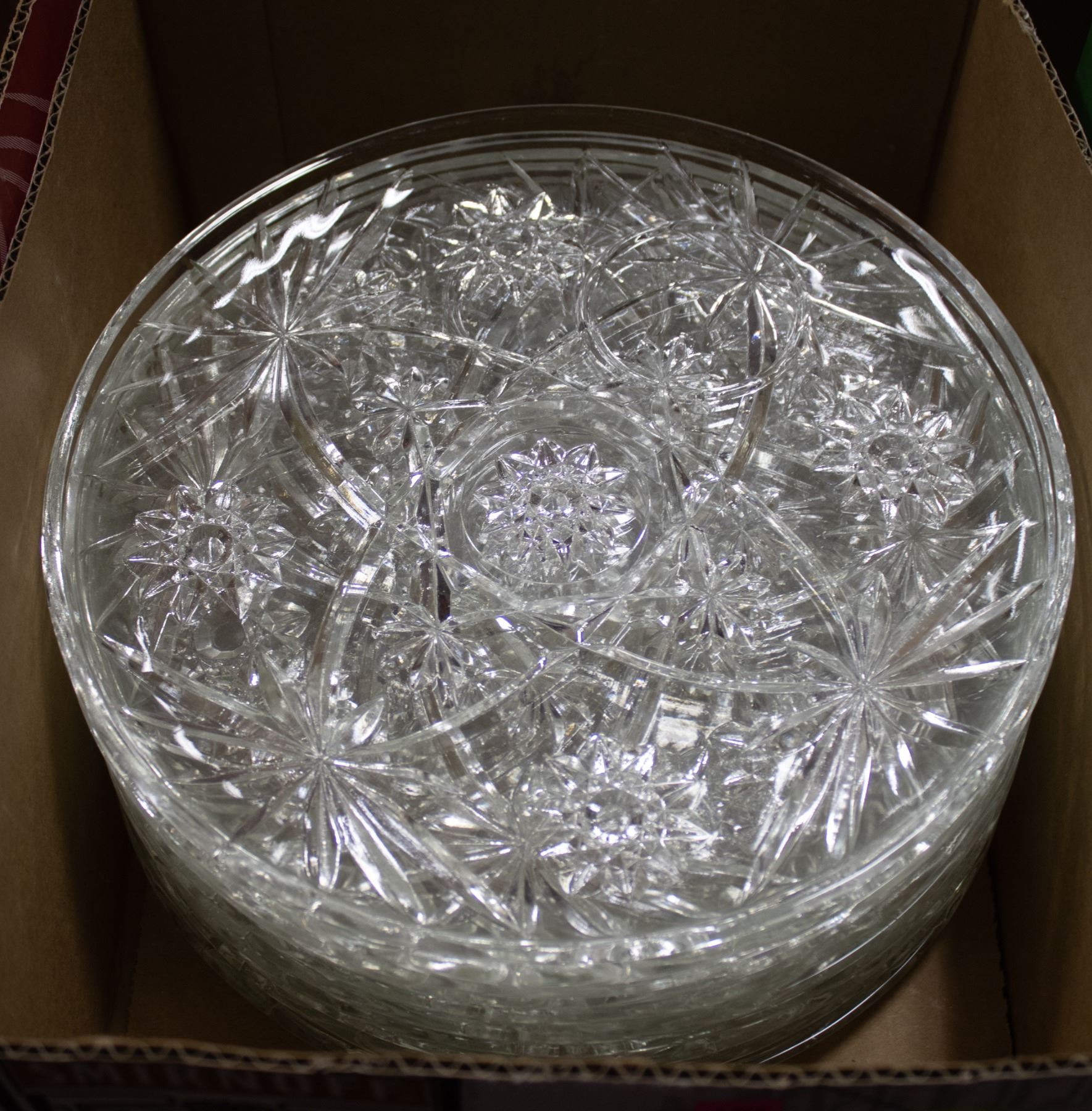 BOX OF 10 MATCHING CUT GLASS PLATES