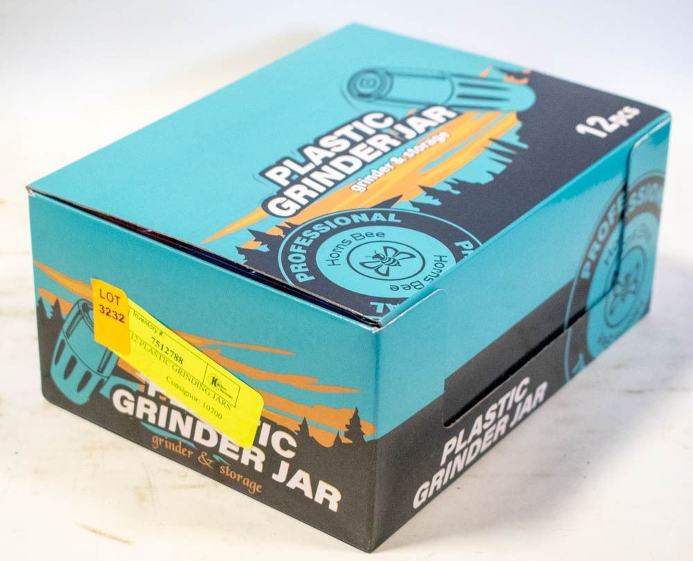 BOX OF 12 PLASTIC GRINDING JARS