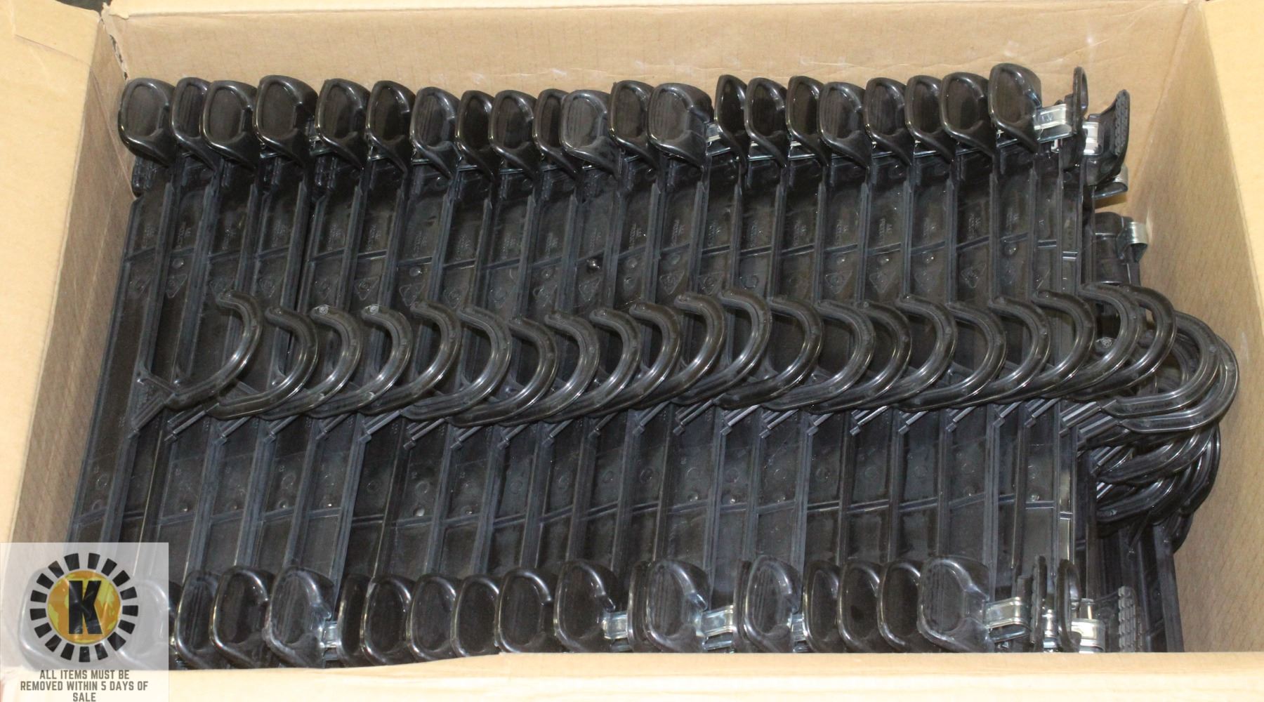 BOX (100TOTAL) CLEAR HANGARS. ITEM# 68-26103-CLR-17ALL ITEMS MUST BE REMOVED WITHIN 5 DAYS OF SALE