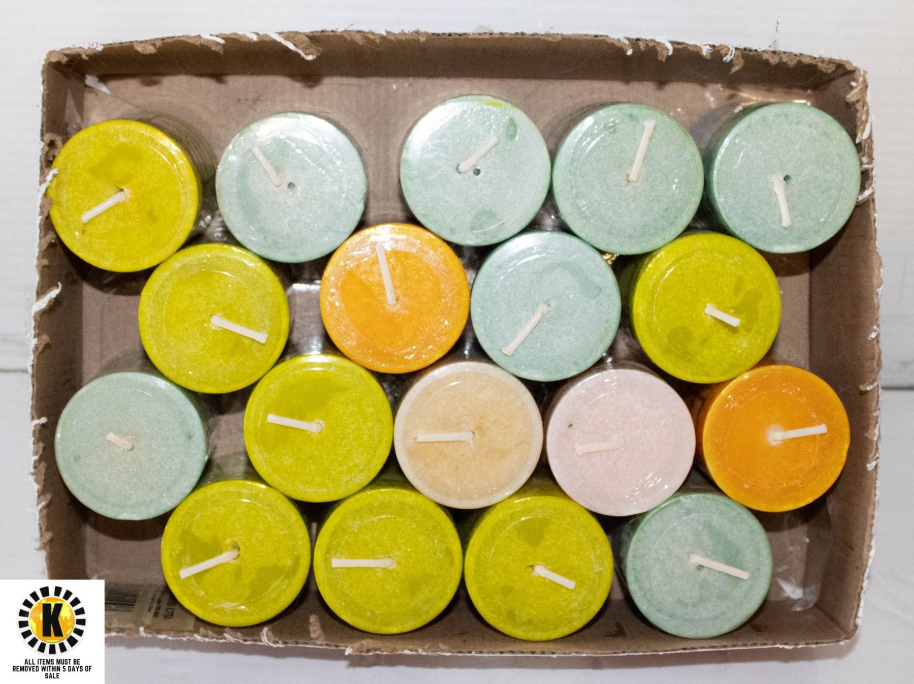 BOX OF 18 AROMA SCENTED CANDLES, VARIOUS SCENTS