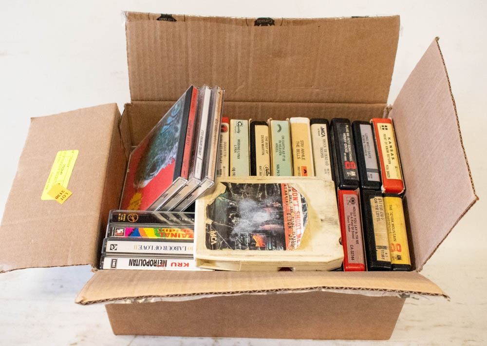 BOX OF 19 ROCK 8 TRACKS, 3 CDS, 14 CASSETTES