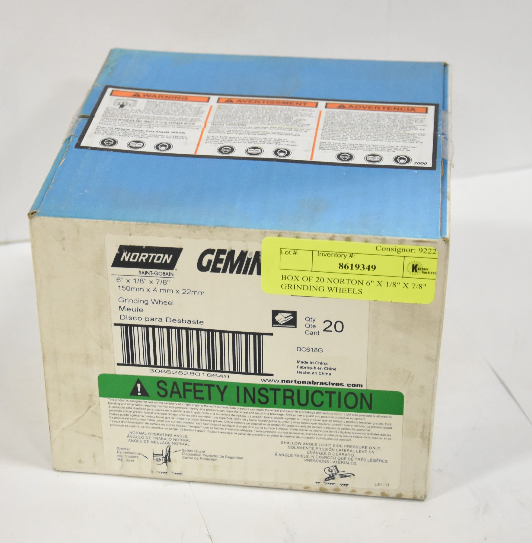 BOX OF 20 NORTON 6" X 1/8" X 7/8" GRINDING WHEELS