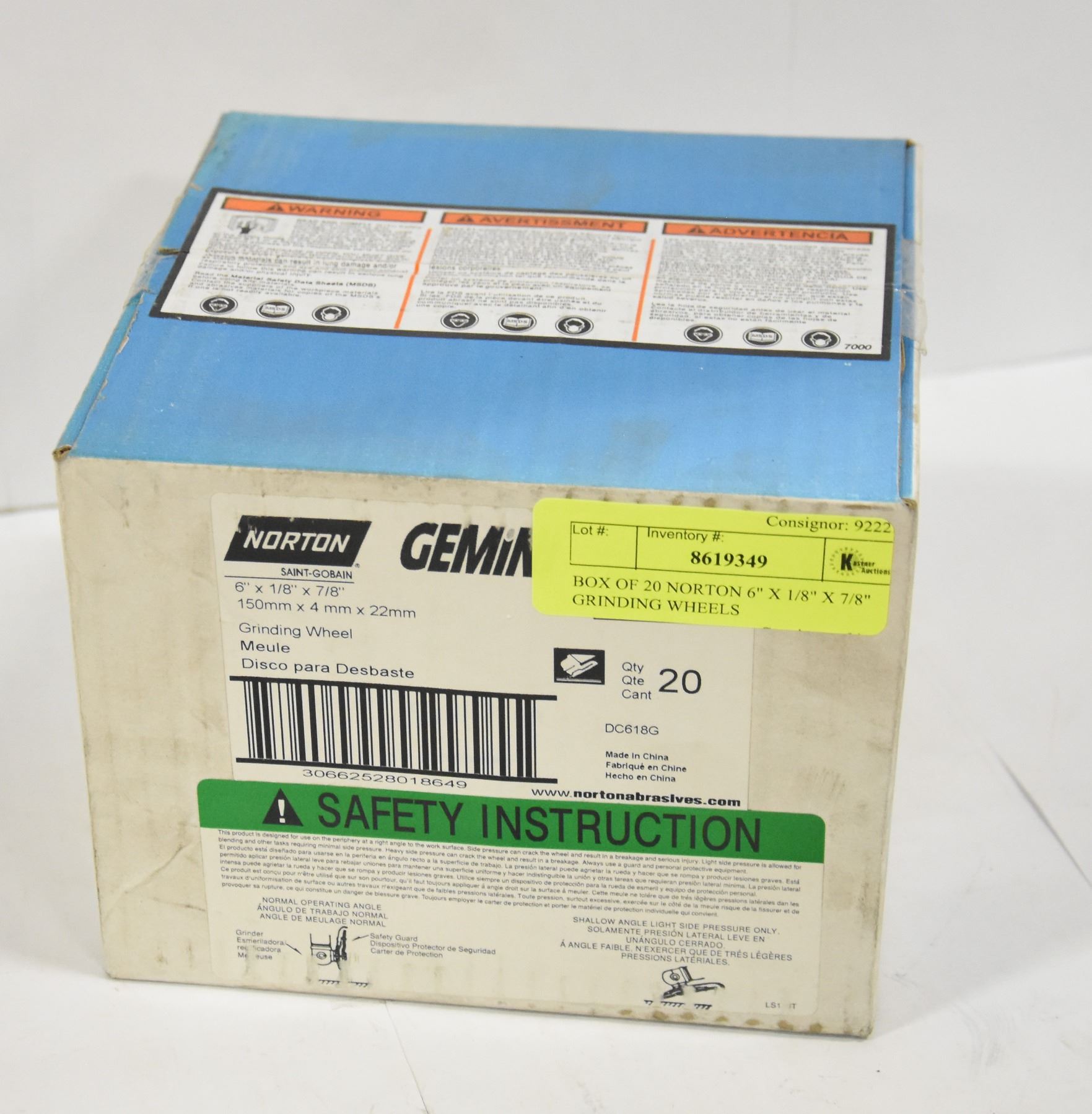 BOX OF 20 NORTON 6" X 1/8" X 7/8" GRINDING WHEELS