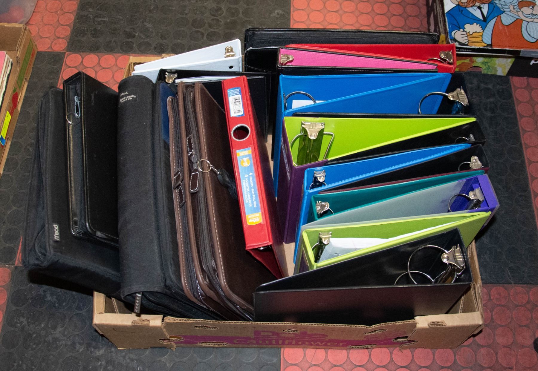 ZIPPER BINDERS/ORGANIZERS, LEATHER FOLIO AND ATTACHE STYLE BINDERS, 1", 2", 3" HILROY STAPLES BRANDS, ETC. **ALL ITEMS MUST BE REMOVED BY 5PM SATURDAY, MARCH 4TH 2023. ALL REMAINING ITEMS WILL BE SUBJECT TO A $6.00 PER DAY STORAGE CHARGE. ANY ITEMS REMAINING AFTER MONDAY, MARCH 20TH, 2023 WILL BE CONSIDERED FORFEITED. NO REFUNDS WILL BE ISSUED FOR FORFEITED ITEMS. TO SCHEDULE A PICK UP APPOINTMENT CLICK HERE