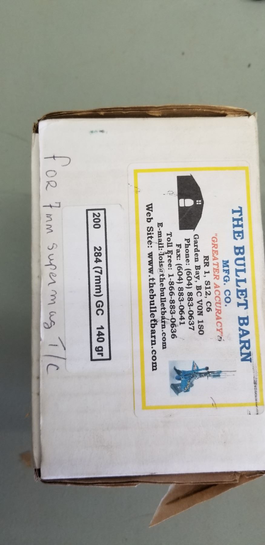 BOX OF 200 BUET BARN 284(7MM) GC , 140 GRAIN FOR 7MM SUPER MAG TC